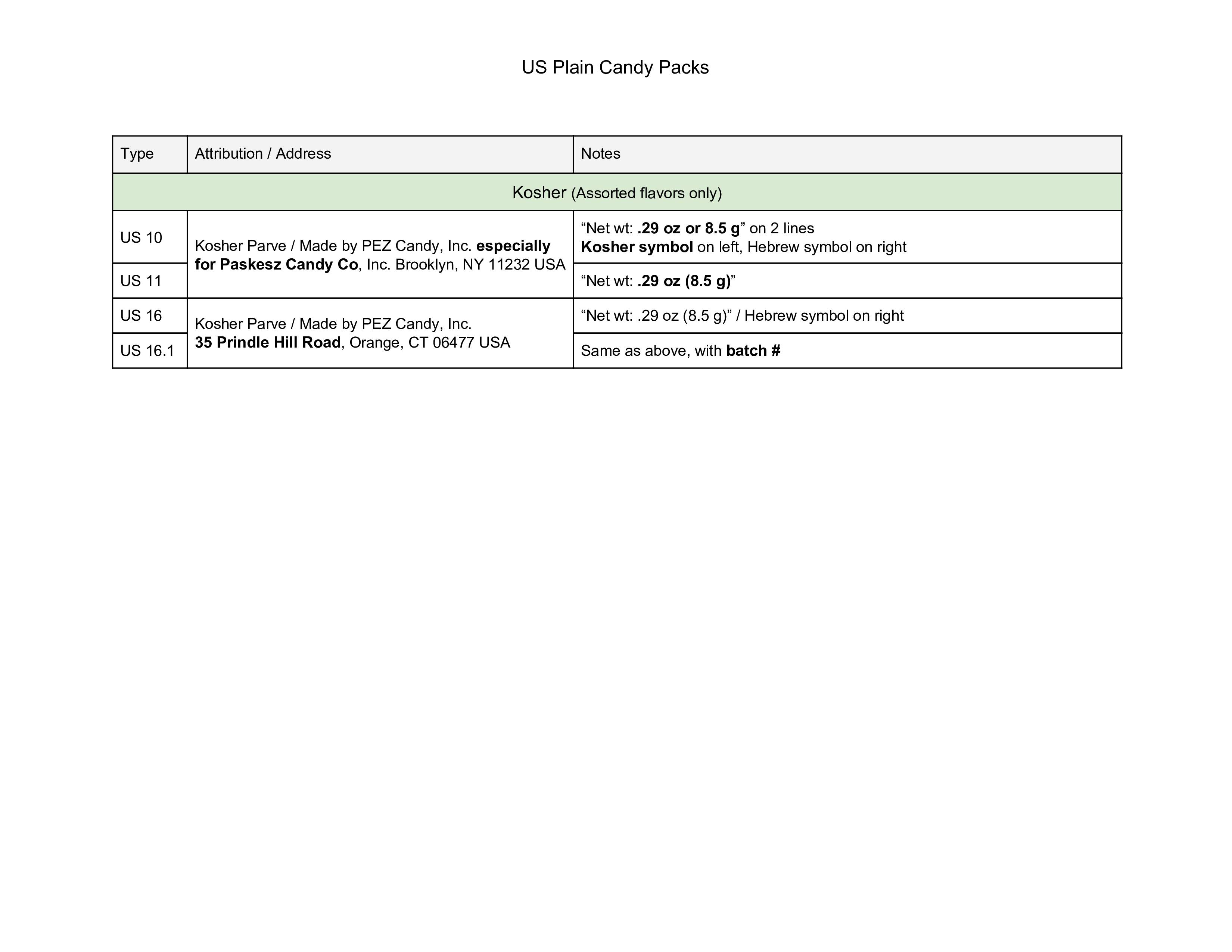 Petergagne (talk | contribs) Table to help identify US kosher candy packs. |