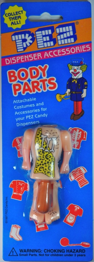 Several promotional sets were released on "PEZ Play World" double cards. There are four distinct body parts in this set. However, each could be found packaged with one of several different unique dispensers.
