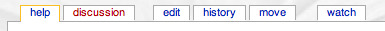 - At the top of the page are links (often called tabs) which relate to the page currently displayed: its associated discussion page, the version history, and—most notably—the edit link.
