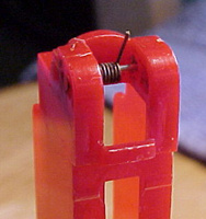 This picture shows how the steel hinge pin goes through the wire head spring and into the side ears of the inner sleeve.