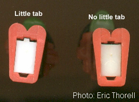 This is a fun little sleeve variation! The Inner Sleeve Tab or Tongue is a small little tab that is located on the bottom front side of the inner sleeve. Although it has been found on 4.9 dispensers, it is more commonly found on dispensers with a 3.9 patent number. It is my guess that this tab was designed into the sleeve to help keep the front-to-back fit of the sleeve within the stem snug. Another transitional variation from a 3.9 patent to a 4.9 patent dispenser. |