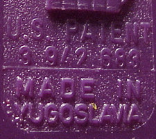 US Zone" Patent marking. The patent number molded onto the stem changed every time PEZ, Inc. made a significant change in the design of the dispenser, and reapplied for a new Patent Number. By looking at the patent number, you can also determine a rough guess of the dispenser's age. The patent number timeline is as follows: