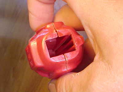 On Full Body Dispensers like the Space Trooper and Santa Claus, there is not a stem per se... but rather a full-featured molded body. These dispensers get their name "Full Body" for obvious reasons. The Full Bodied Space Trooper and Santa were the first "character" dispensers made by PEZ. They were produced towards the end of the Regulars time frame, but came out before the rectangular stemmed (standard) character dispensers were produced. Because these dispenser stems were not rectangular, PEZ had to mold some additional *ribs* inside of the body to help capture and guide the inner sleeve, as shown in the photo below.